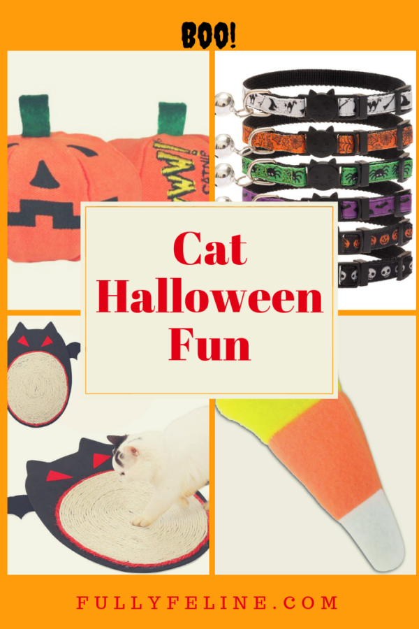 All cats like options, especially when it comes to toys, so a couple of other great Halloween toy options are the Imperial Cat Candy Corn Catnip Toy (pictured above, lower right) and the Ghost Catnip Toy (also from Imperial Cat). Made in the USA and filled with certified organic catnip, these toys are sure to provide loads of fun.